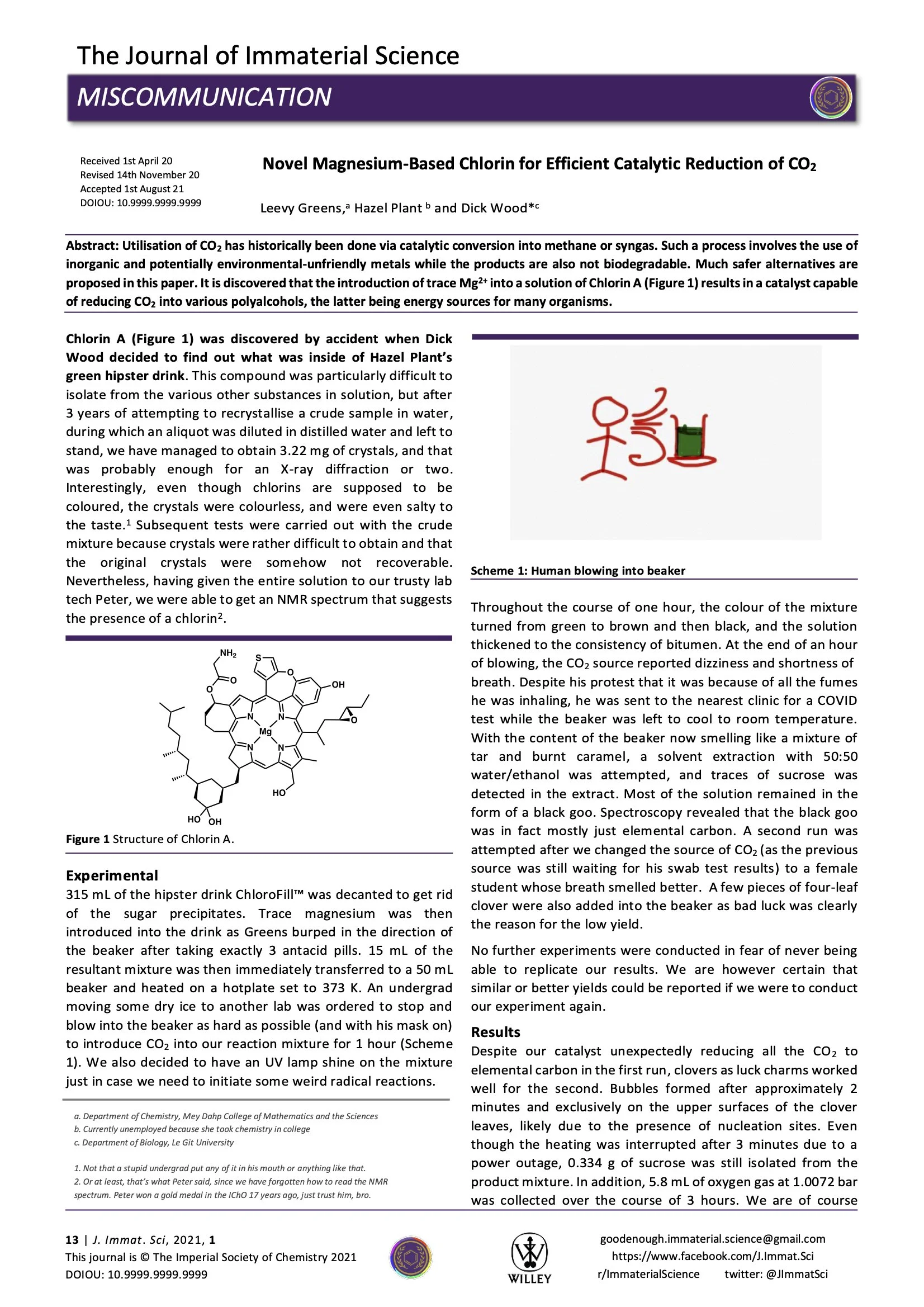 Abstract: Utilisation of CO2 has historically been done via catalytic conversion into methane or syngas. Such a process involves the use of inorganic and potentially environmental-unfriendly metals while the products are also not biodegradable. Much safer alternatives are proposed in this paper. It is discovered that the introduction of trace Mg2+ into a solution of Chlorin A (Figure 1) results in a catalyst capable of reducing CO2 into various polyalcohols, the latter being energy sources for many organisms.