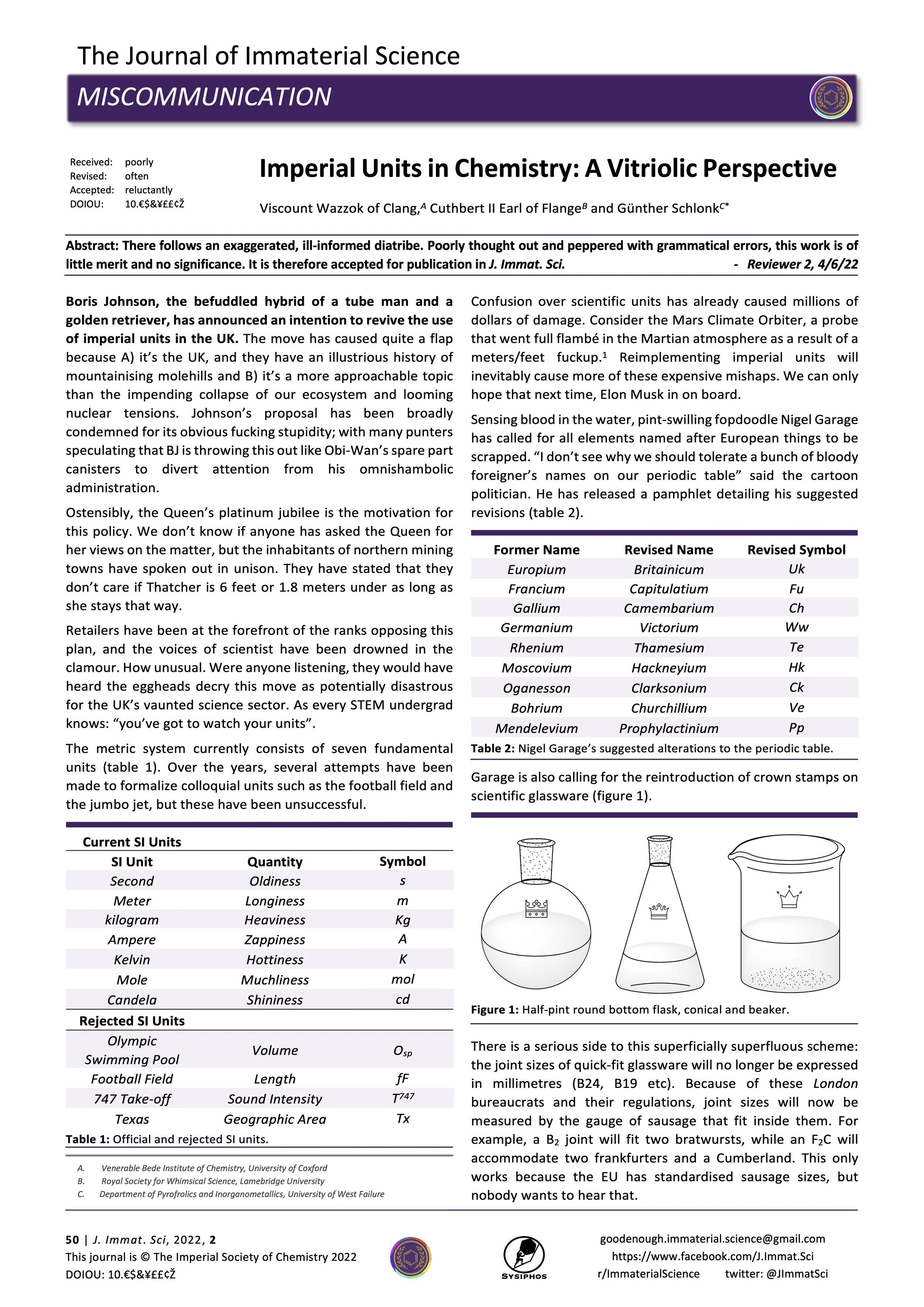Imperial Units in Chemistry: A Vitriolic Perspective