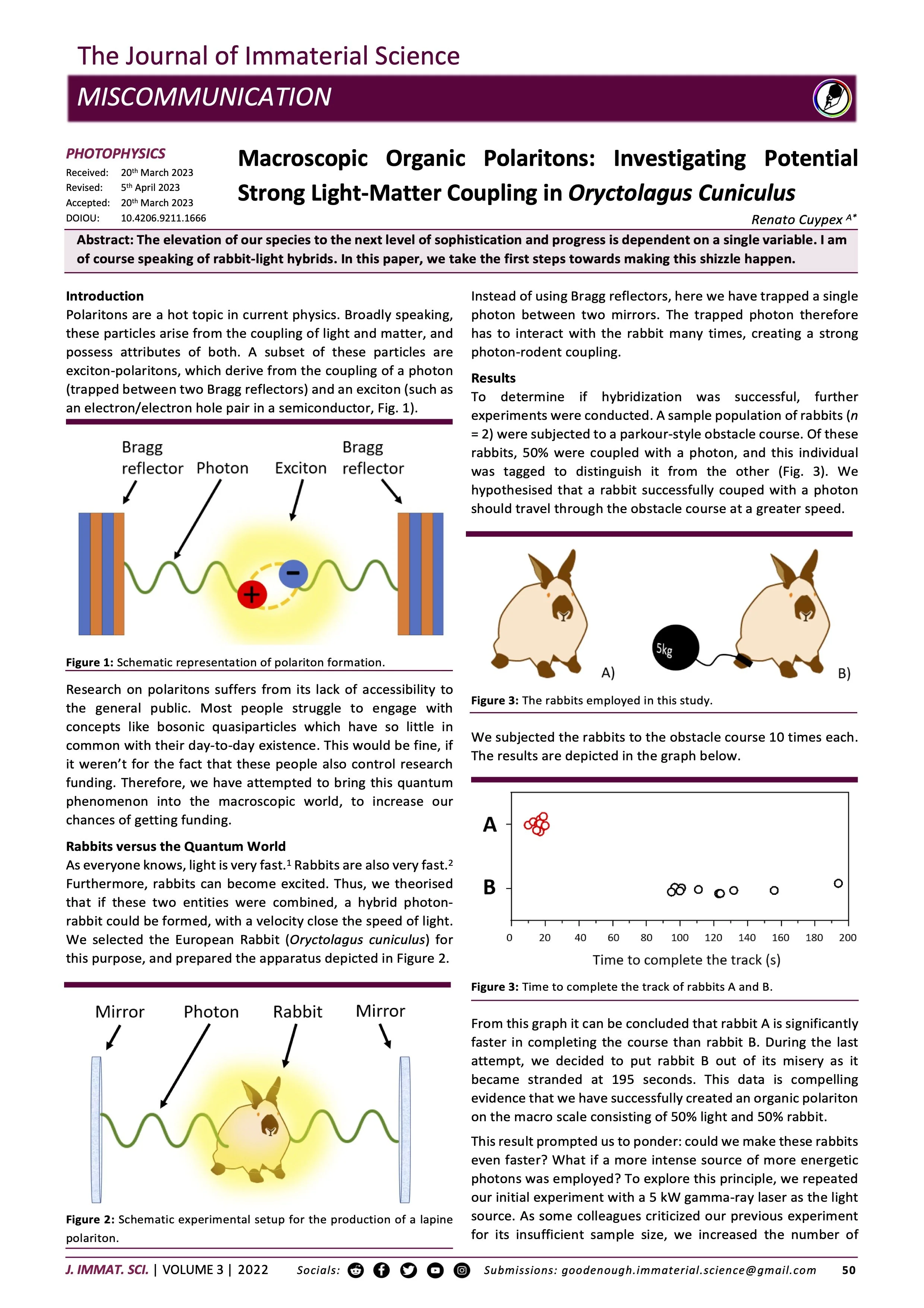Abstract: The elevation of our species to the next level of sophistication and progress is dependent on a single variable. I am of course speaking of rabbit-light hybrids. In this paper, we take the first steps towards making this shizzle happen.