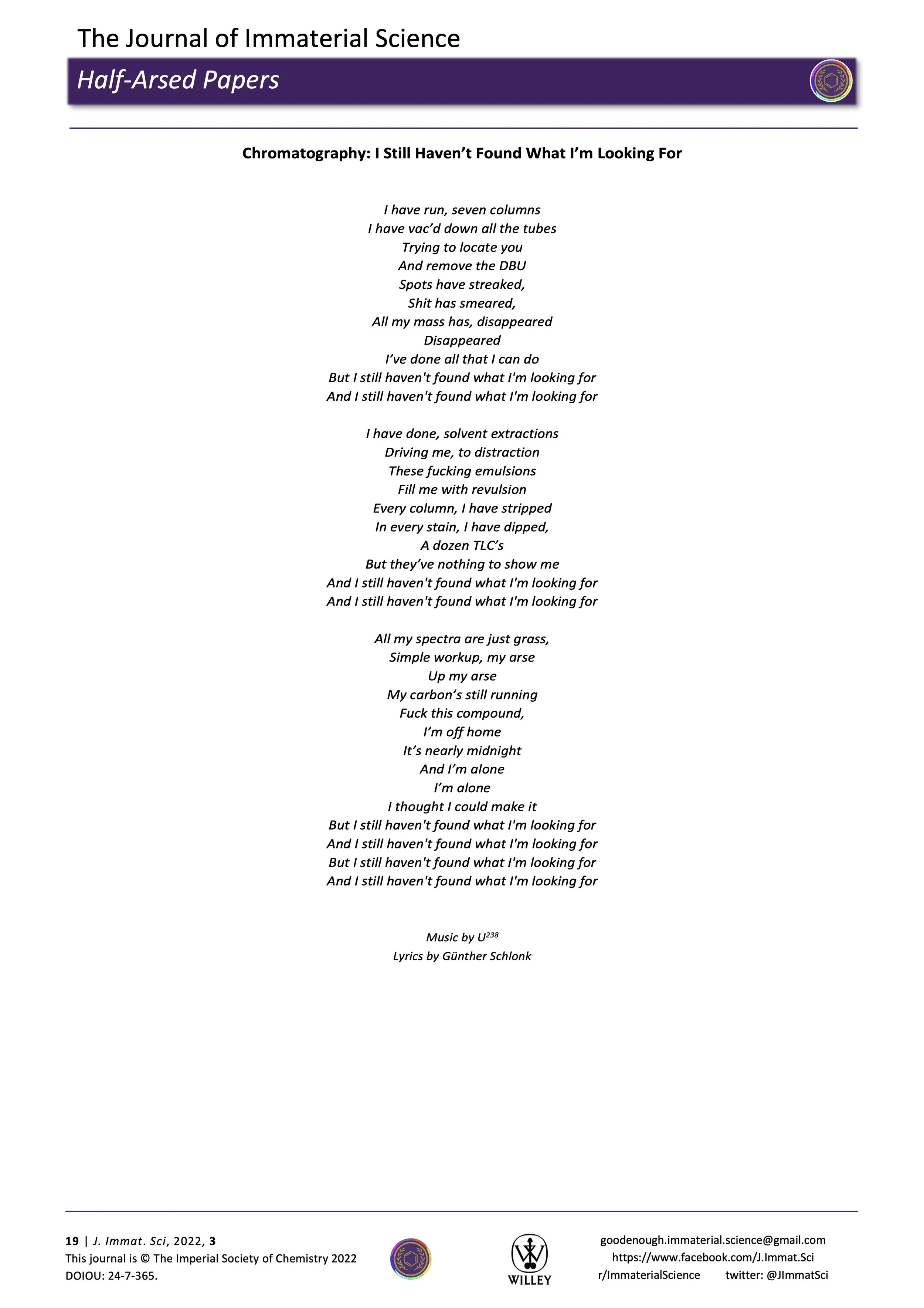 A song about chromatography, to the tune of U2’s “Still haven’t found what I’m looking for”.