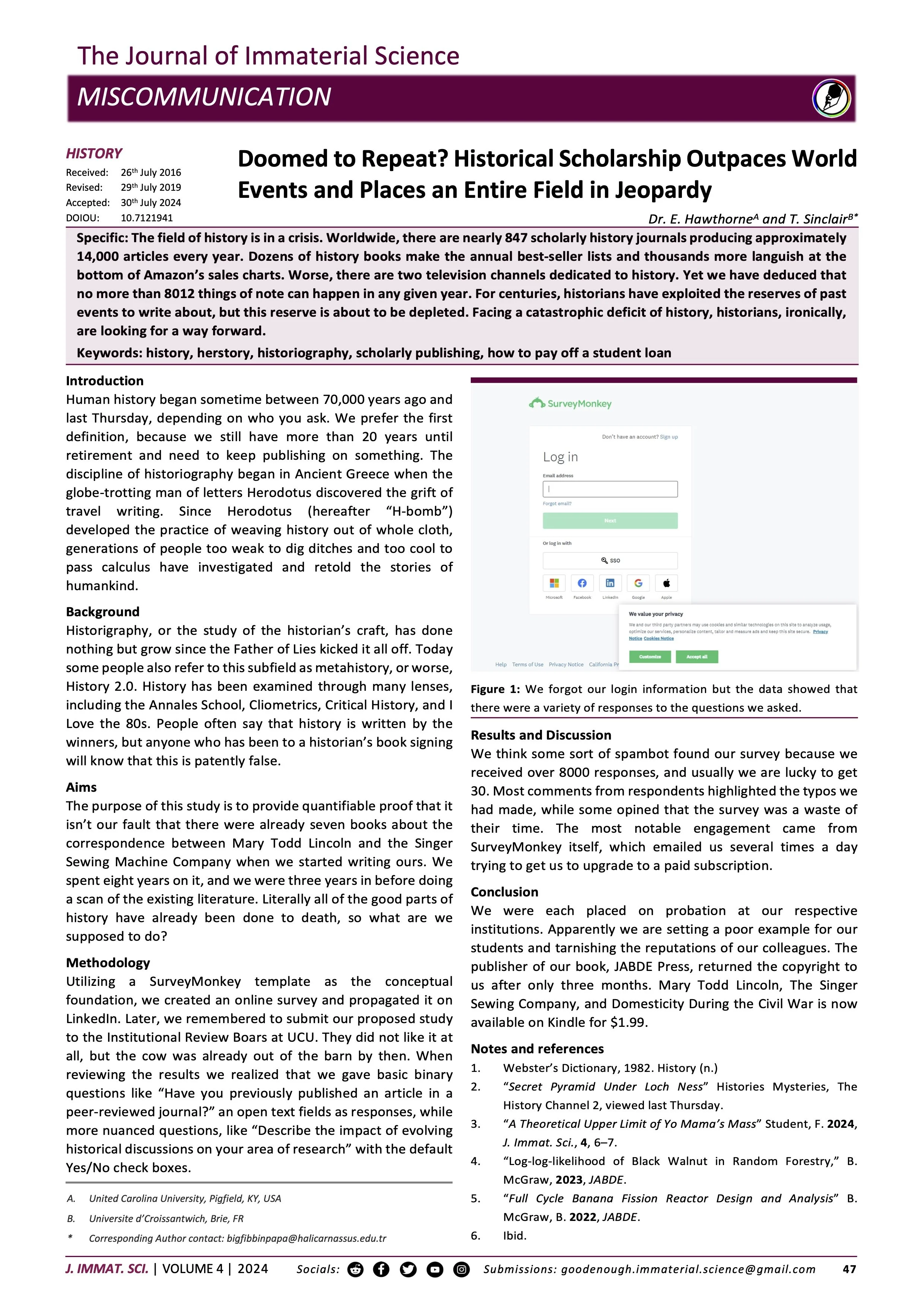 Abstract: The field of history is in a crisis. Worldwide, there are nearly 847 scholarly history journals producing approximately 14,000 articles every year. Dozens of history books make the annual best-seller lists and thousands more languish at the bottom of Amazon’s sales charts. Worse, there are two television channels dedicated to history. Yet we have deduced that no more than 8012 things of note can happen in any given year. For centuries, historians have exploited the reserves of past events to write about, but this reserve is about to be depleted. Facing a catastrophic deficit of history, historians, ironically, are looking for a way forward.