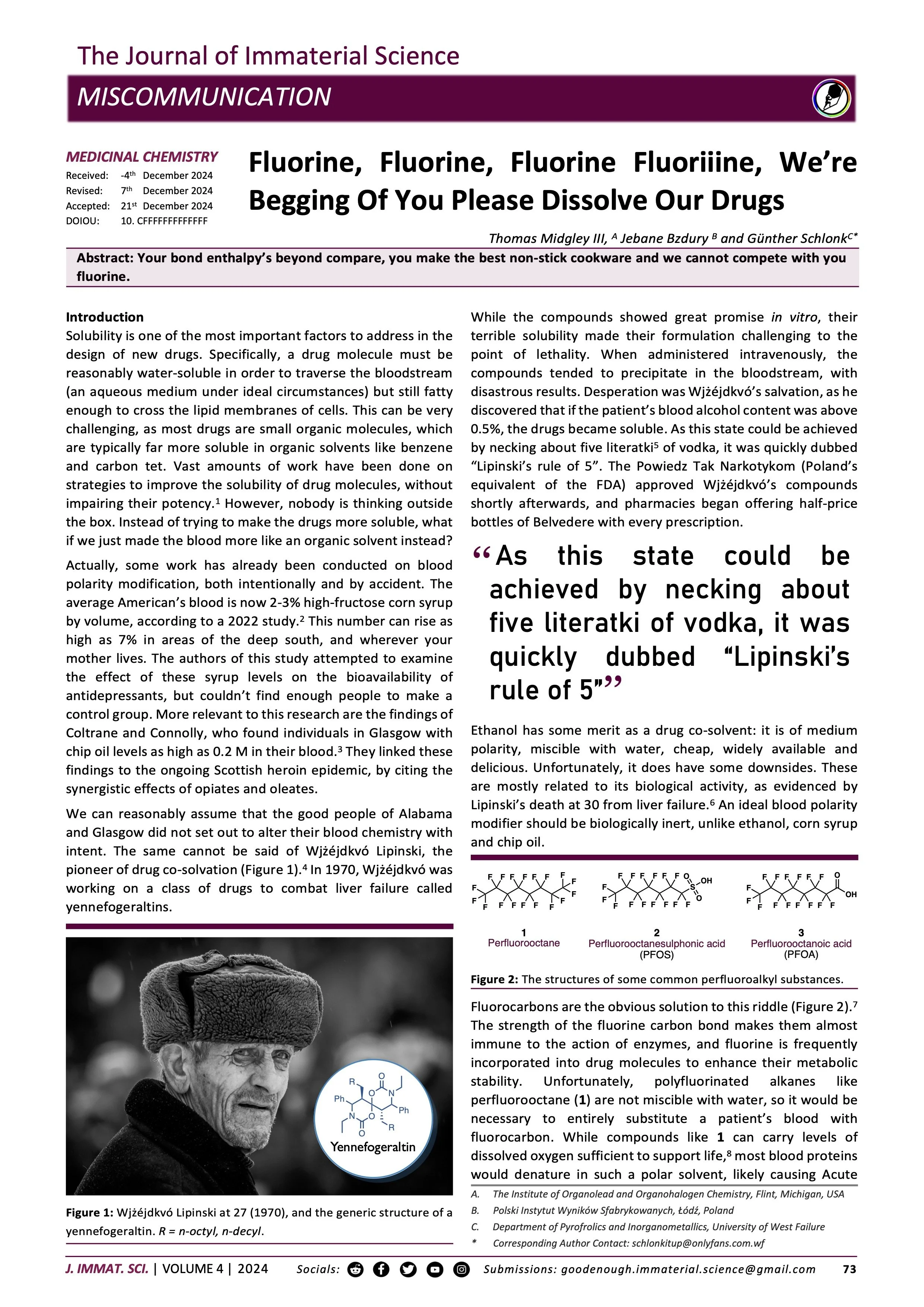 Fluorine, Fluorine, Fluorine Fluoriiine, We’re Begging Of You Please Dissolve Our Drugs