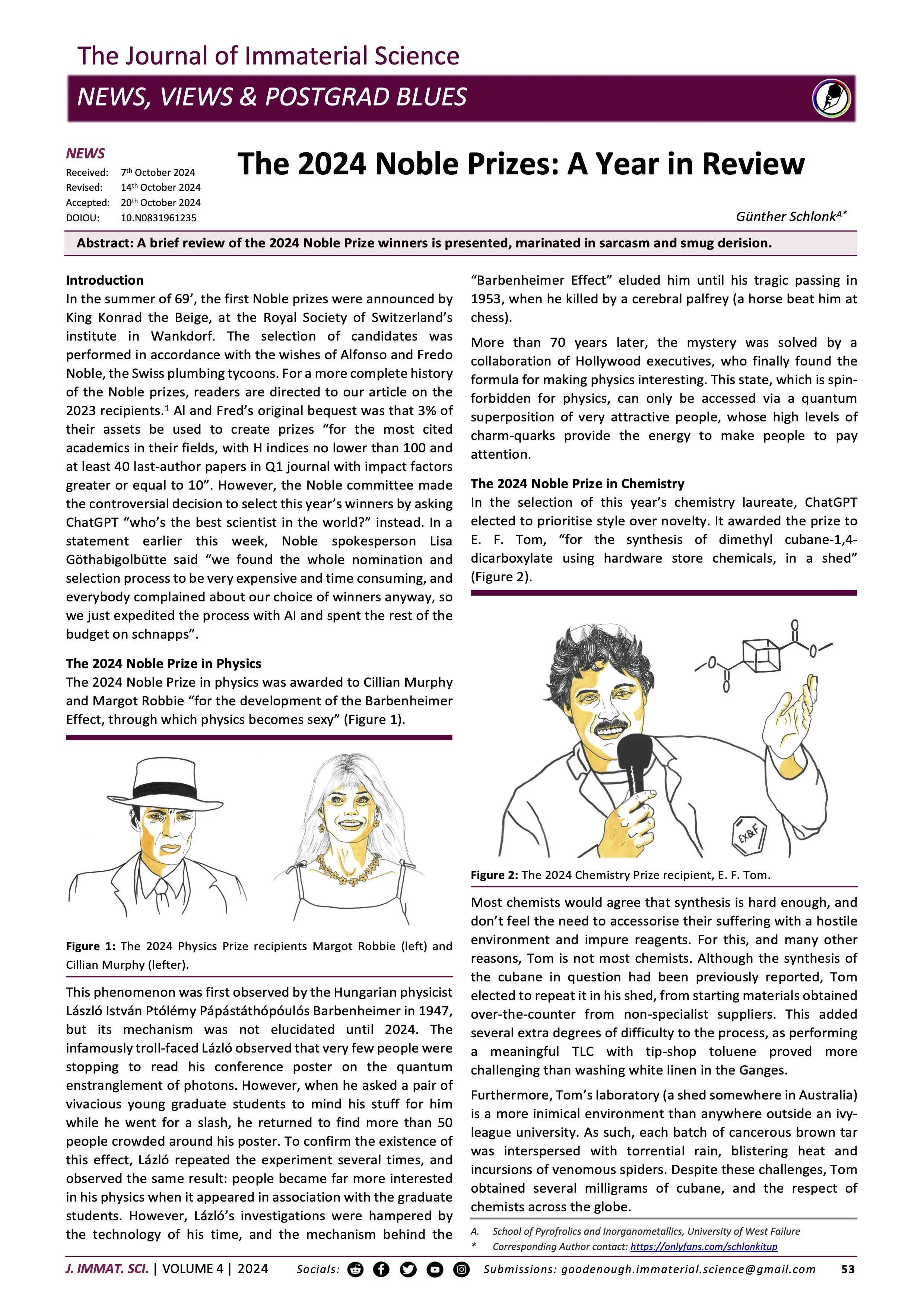 Abstract: A brief review of the 2024 Noble Prize winners is presented, marinated in sarcasm and smug derision.