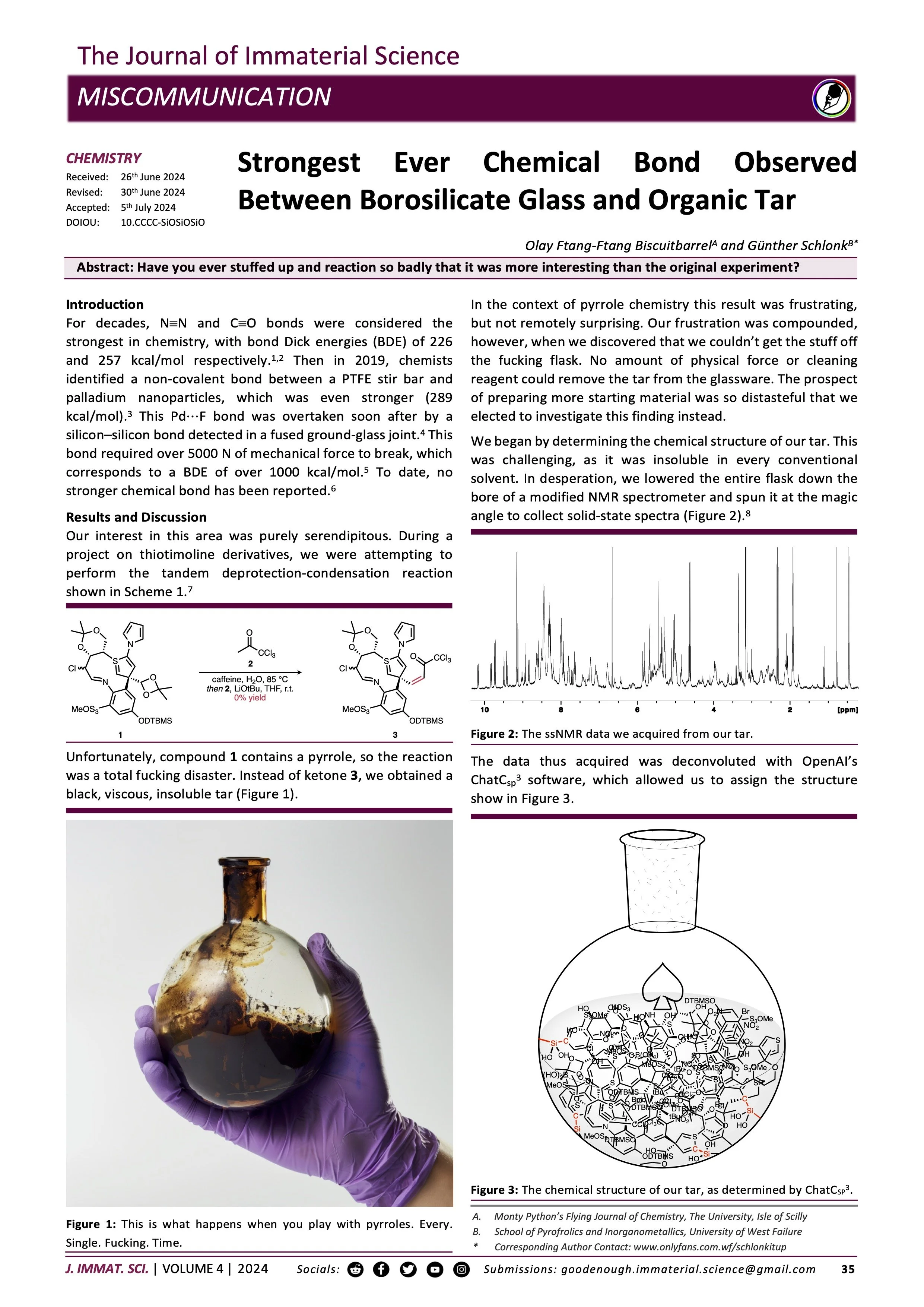Strongest Ever Chemical Bond Observed Between Borosilicate Glass and Organic Tar