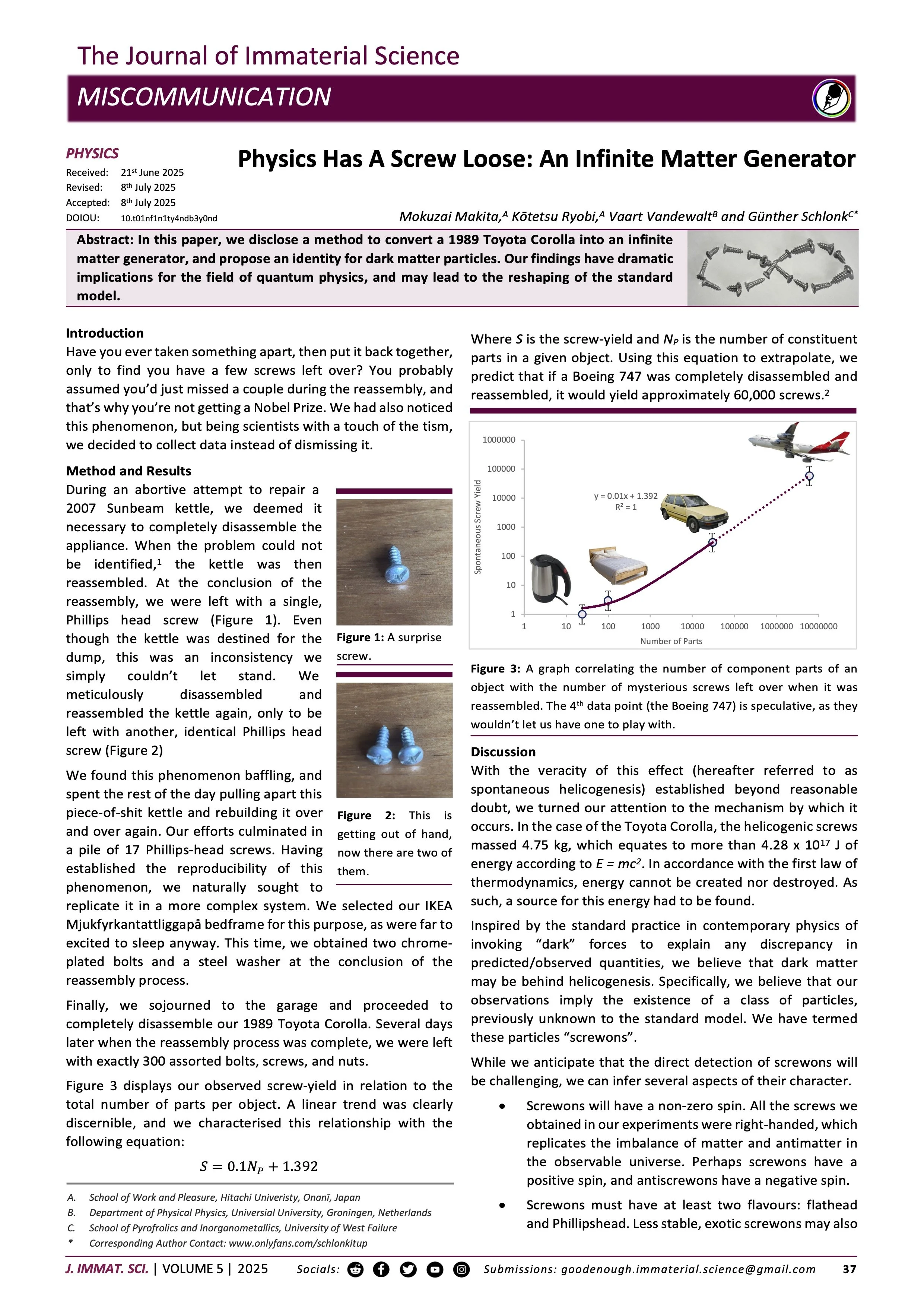 Physics Has A Screw Loose: An Infinite Matter Generator