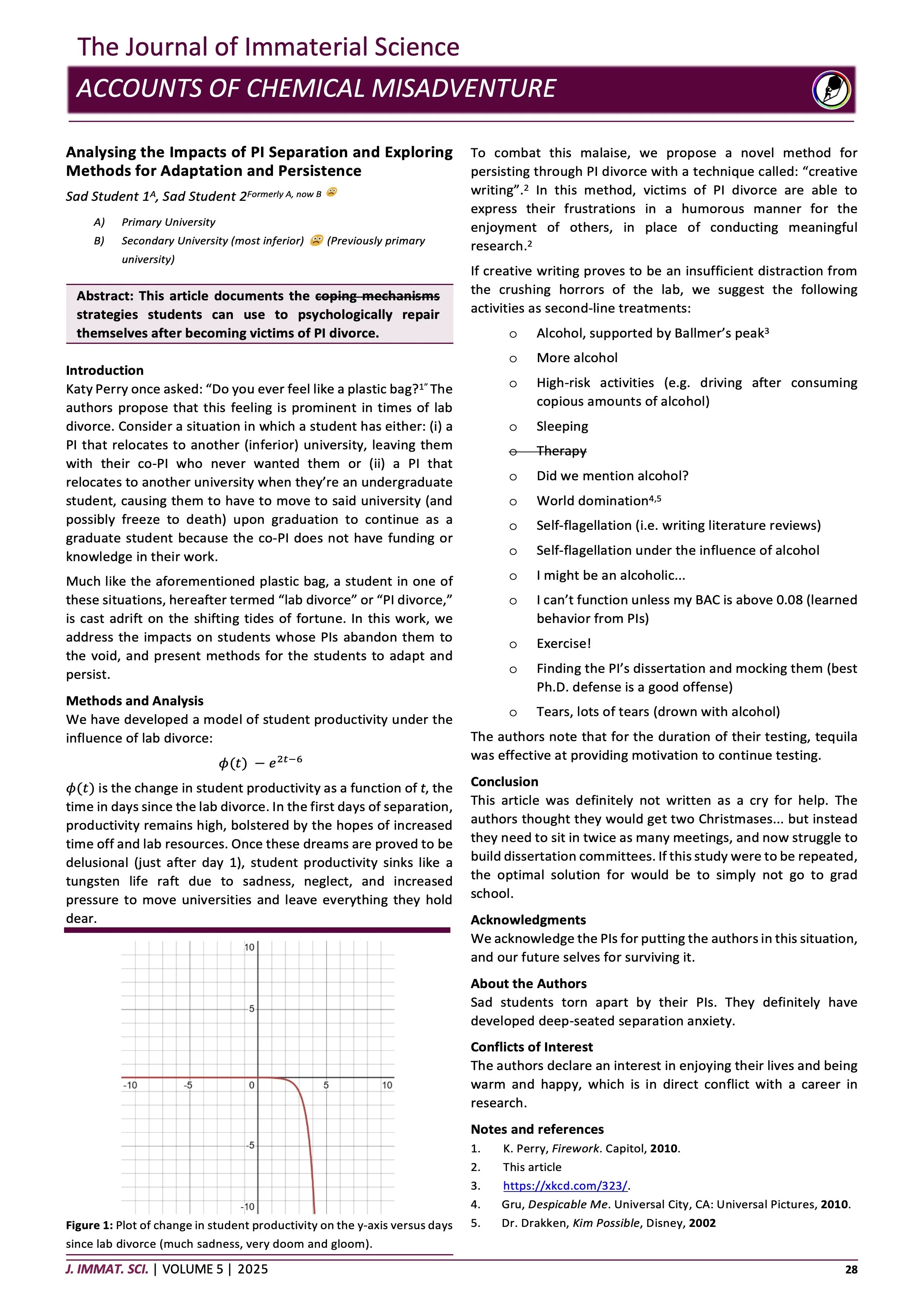 Abstract: This article documents the coping mechanisms students can use to psychologically repair themselves after becoming victims of PI divorce.