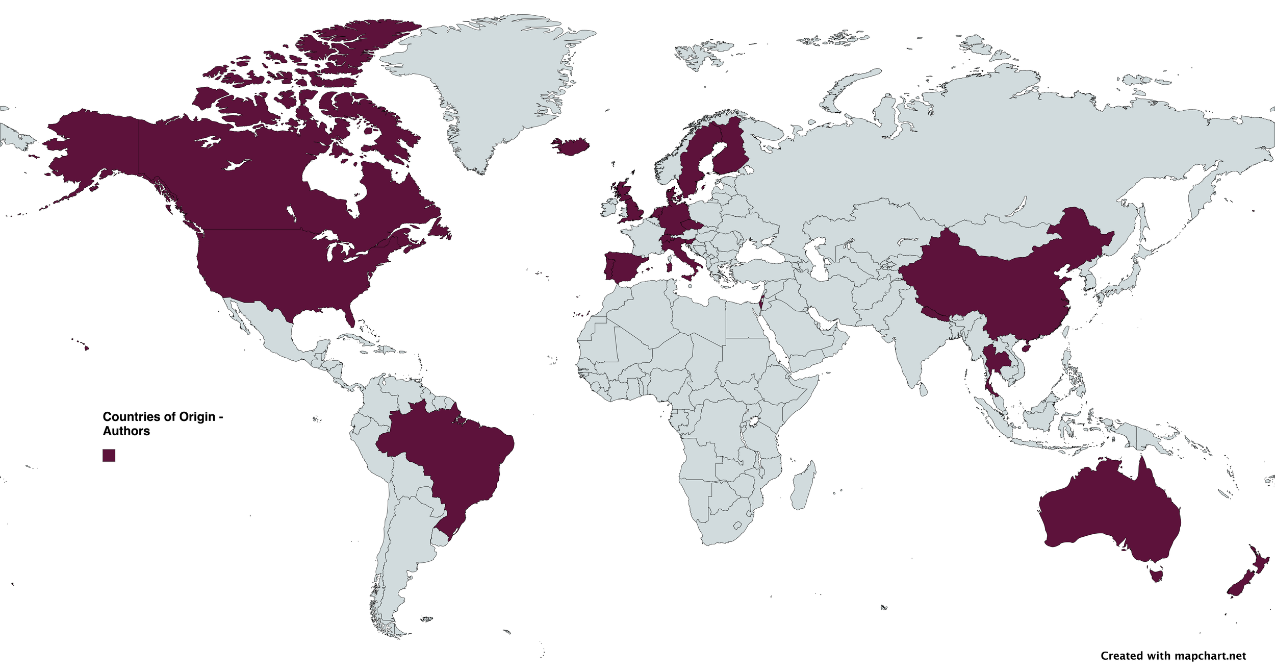 Our authors hail from all over the world. We would love to expand though, so if you live in one of the areas we haven’t coloured in yet, you now have two reasons to send us an article.